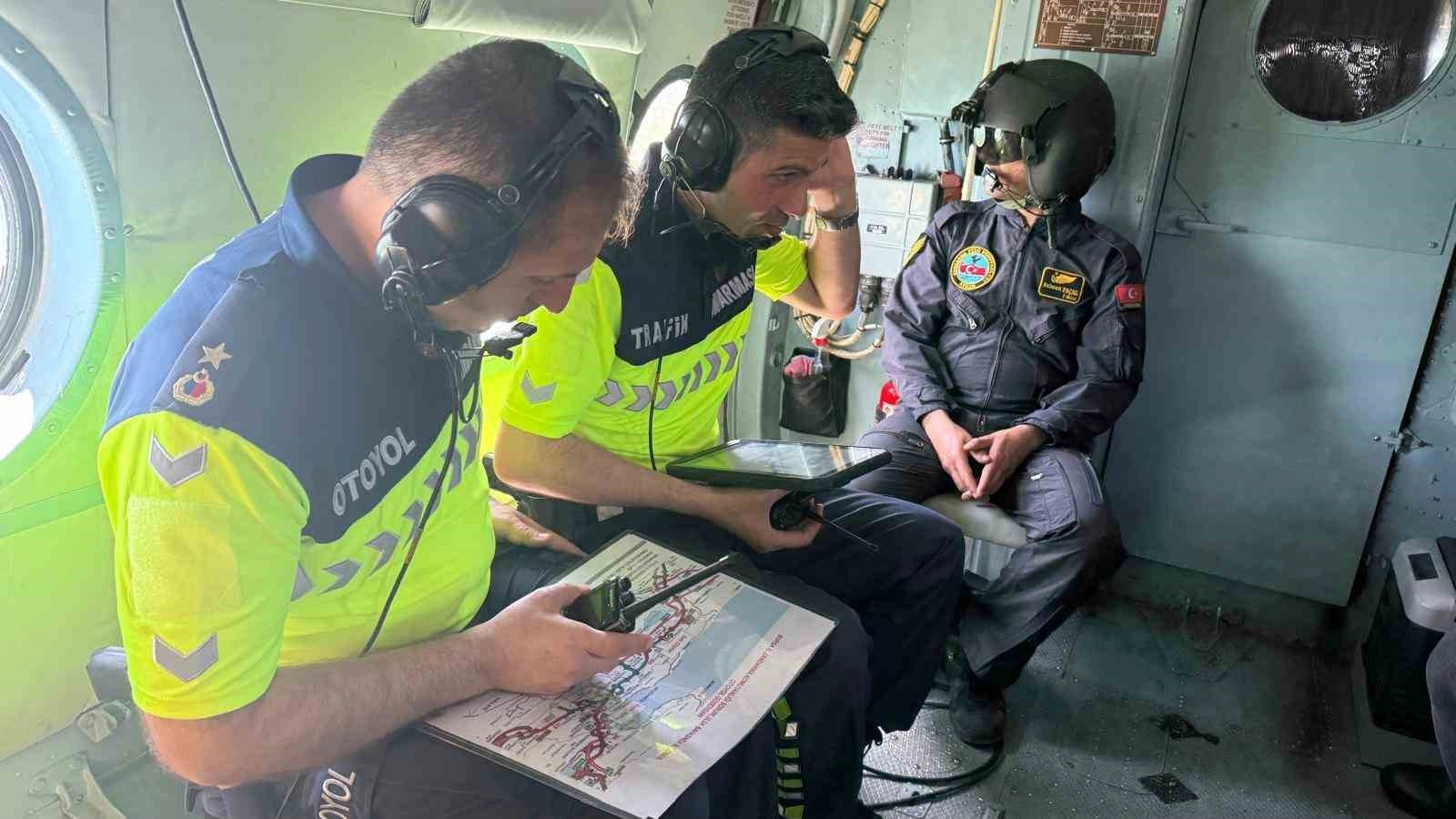 Otoyol trafik jandarmasına ek olarak helikopterli ekipler İstanbul İzmir otobanı üzerinde havadan sürekli kontrol yaptı. İhlas Haber Ajansı ekibi de jandarma helikopteri ile an be an denetimleri görüntüledi.