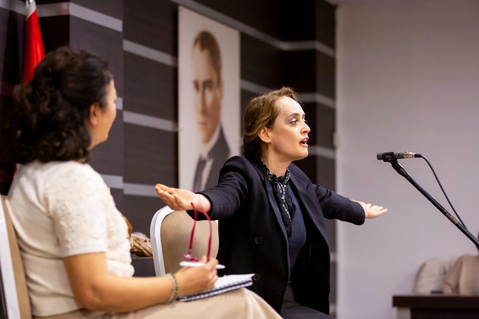 Etkinlikte, Gamze İzmirli ve Sevinç Kasırga, sergiledikleri etkileyici tiyatral anlatımla izleyicileri bir asır öncesinin zorlu koşullarına götürdü. Yazar Hüseyin Suat Bey’in Afife Jale için söylediği; “Bizim sahnemize bir sanat fedaisi lazımdı; sen işte o fedaisin” sözleri, izleyicilere duygusal anlar yaşattı.